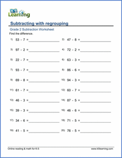 Subtracting large numbers - Grade 5 - K5 Learning Grade 5 math worksheets on subtracting large numbers. Free pdf worksheets from K5 Learning's online reading and math program.
